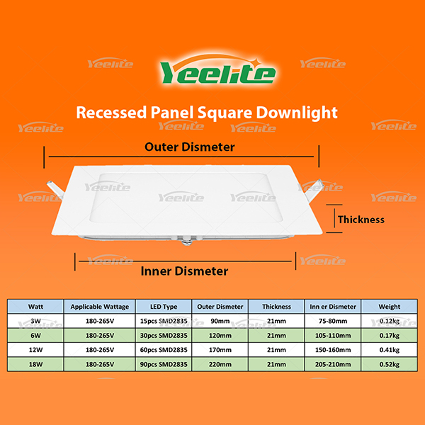Product Name led panel Square/Round Model YEELITE-PANEL Power 3W 6W 12W 18W LED Type SMD 2835 LED Qty 15pcs 30pcs 60pcs 90pcs Luminous Flux 210lm±5% 280lm±5% 840lm±5% 1260lm±5% Dimension(mm) φ85 φ120 φ170 φ300 Cut Size(mm) φ70±5 φ100±5 φ150±5 φ200±5 Volume/Carton 100 40 30 20 Input Voltage(V): AC85-265V Lamp Luminous Flux(lm): 1440 CRI (Ra>): 80 Working Temperature(℃): -20 - 49.8 Working Lifetime(Hour): 50.000 IP Rating: IP44 Brand Name: YEELITE Application: Residential/MARKET/HOTEL/OFFICE/HOME Light Source: LED Color Temperature(CCT): 2700-6000K Lamp Luminous Efficiency(lm/w): 80 Power Factor: 0.6 Product name: LED Panel round Item Type: Panel Lights LED Light Source: SMD2835 Warranty(Years): 2